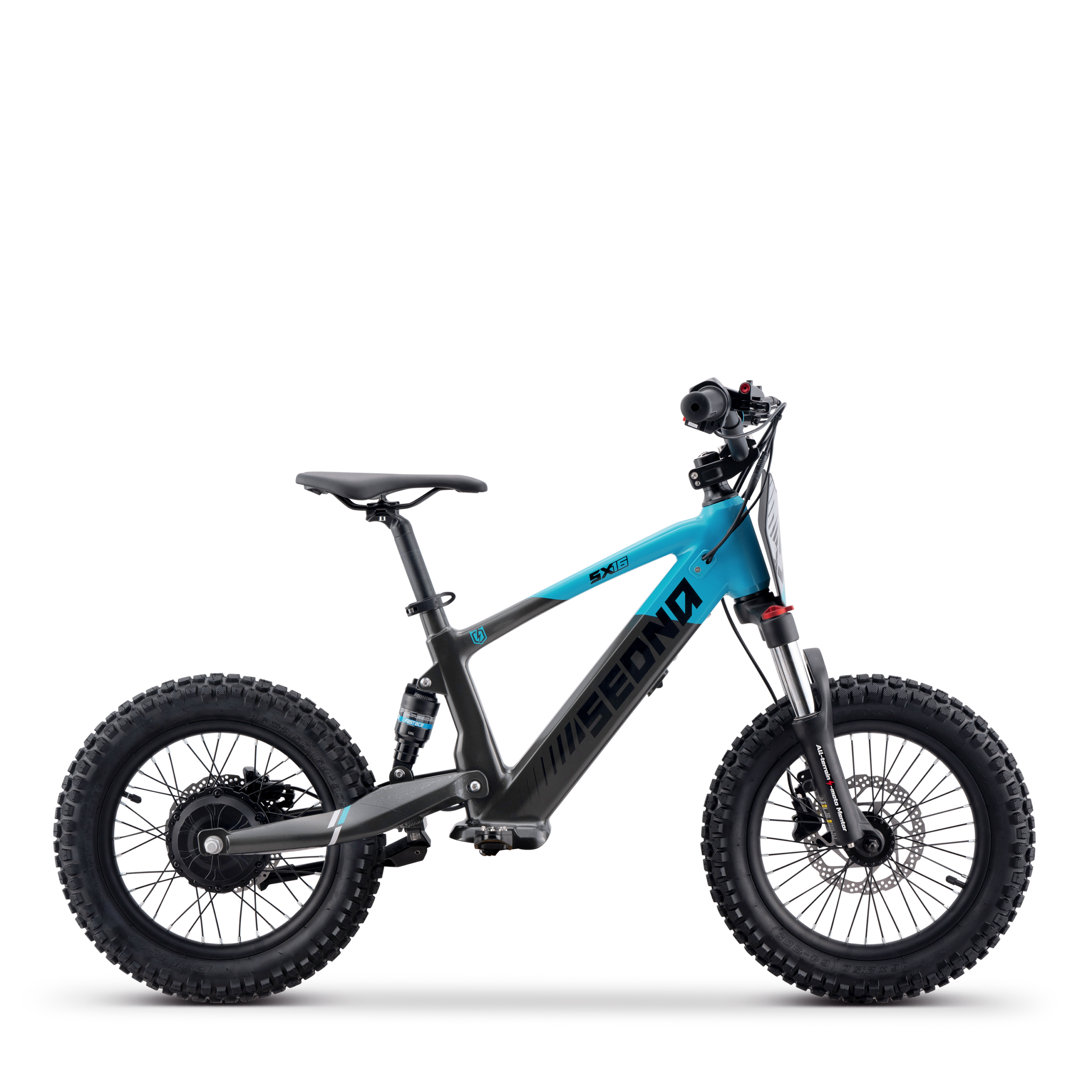 La Sedna SX 16 va au-delà de toutes les attentes avec sa fourche hydraulique à blocage de 380mm, offrant une conduite en douceur et une maîtrise totale du terrain.