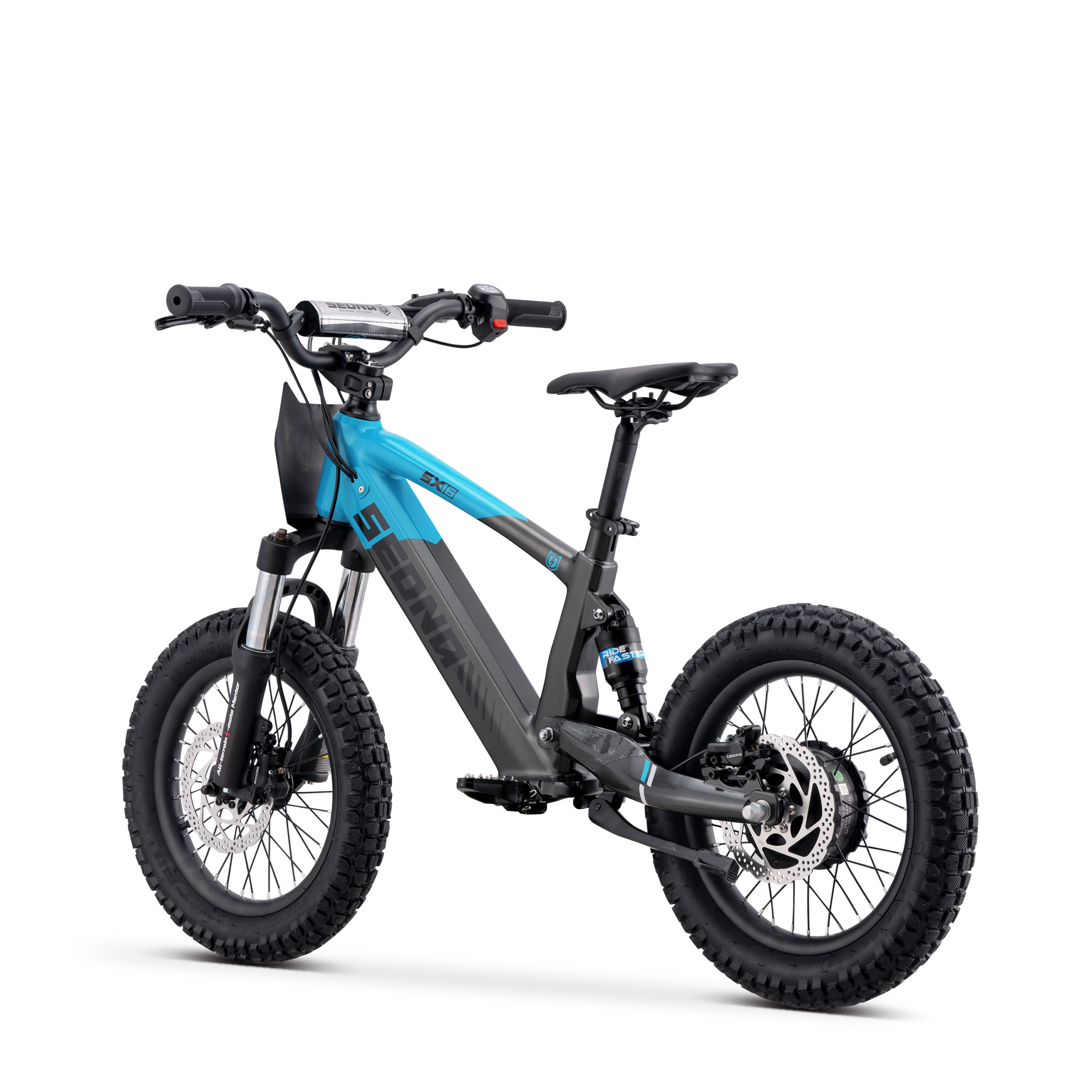 Équipée de freins à disque hydrauliques à l'avant et à l'arrière, la Sedna SX 16 assure un toucher de levier précis et sécurisé, offrant aux jeunes pilotes une confiance totale à chaque mouvement.